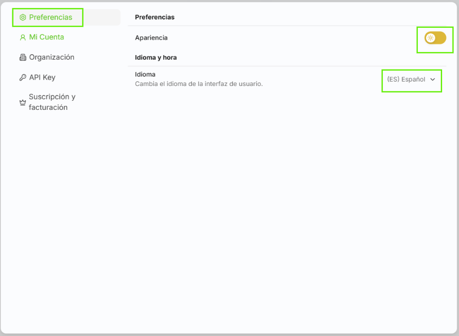 En el menú lateral izquierdo, asegúrate de estar ubicado en la primera pestaña llamada Preferencias.